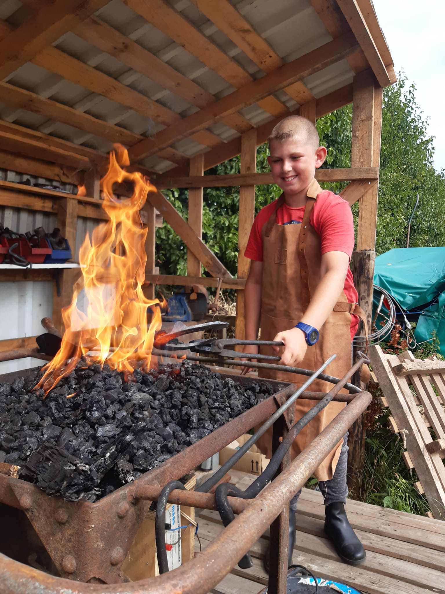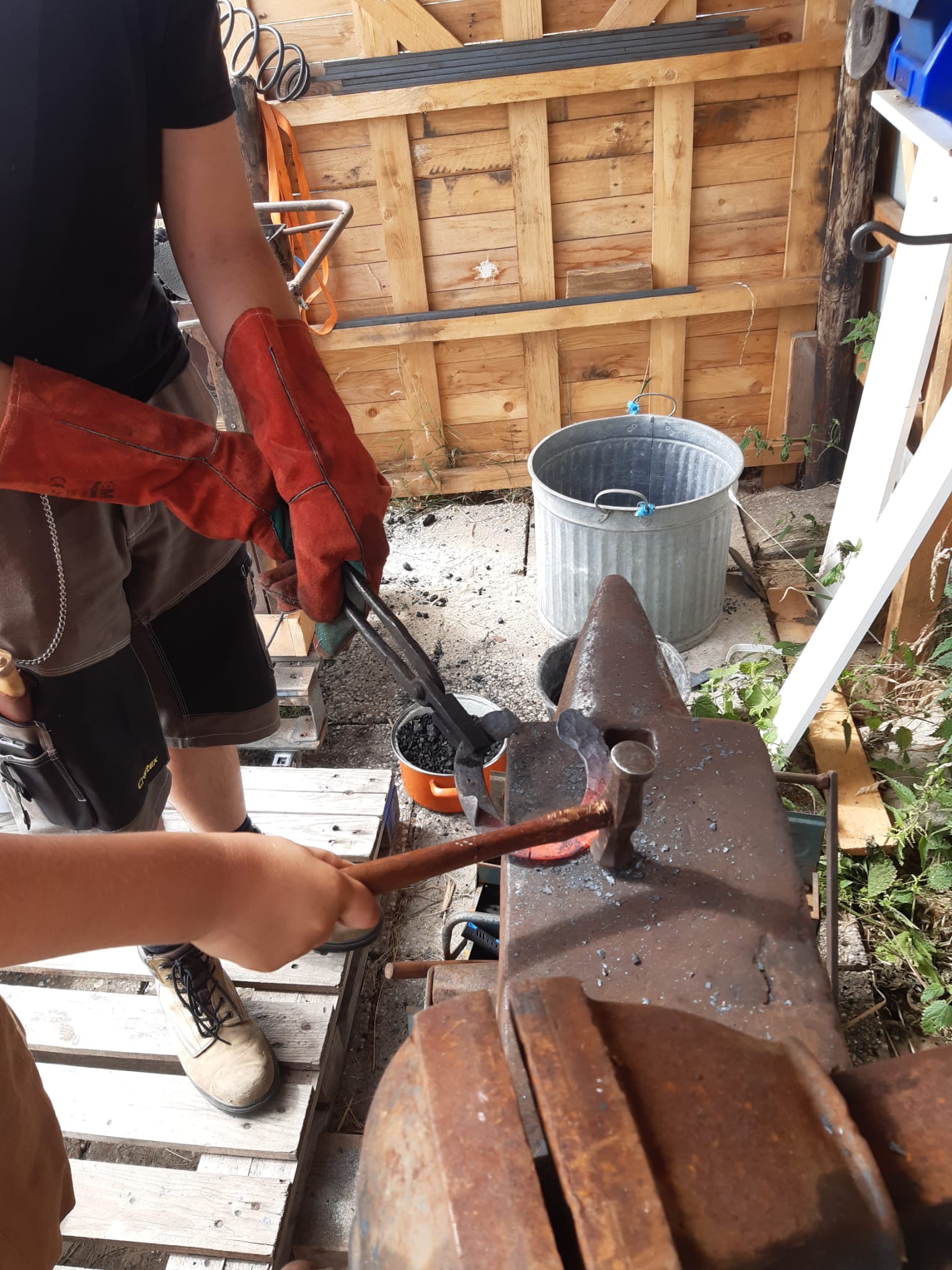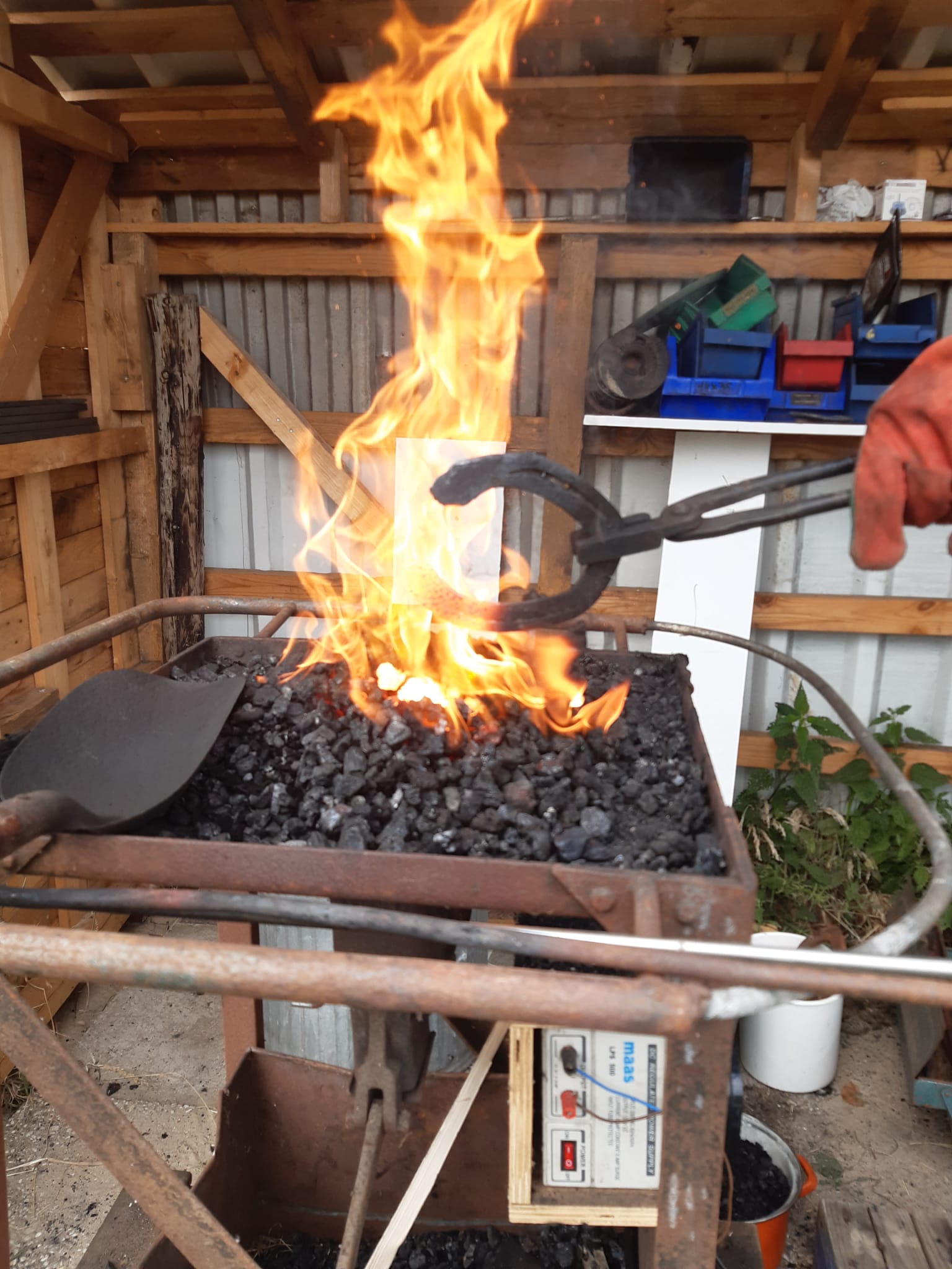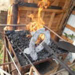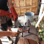 Cliënten kunnen samen met vrijwilliger Rob mooie voorwerpen smeden. Voor het smeden gebruiken we oude hoefijzers van onze paarden.